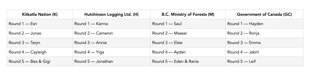 → Hutchinson Logging Ltd. (the private company that purchased the license to harvest the trees on the land in dispute)